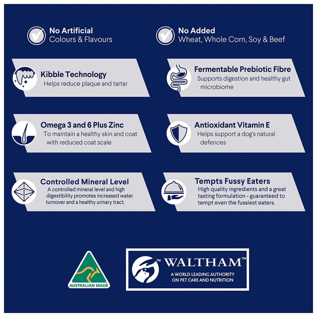 ADVANCE Adult Dog contains controlled levels of minerals and is highly digestible to help reduce the risk of lower urinary tract disease, it is also specifically designed to help reduce dental tartar formation for better oral health.