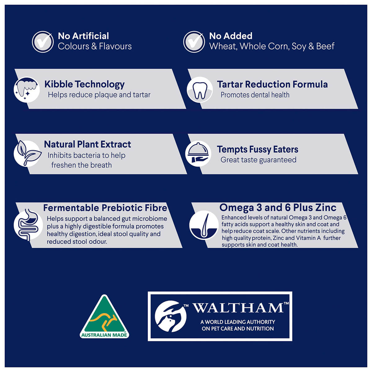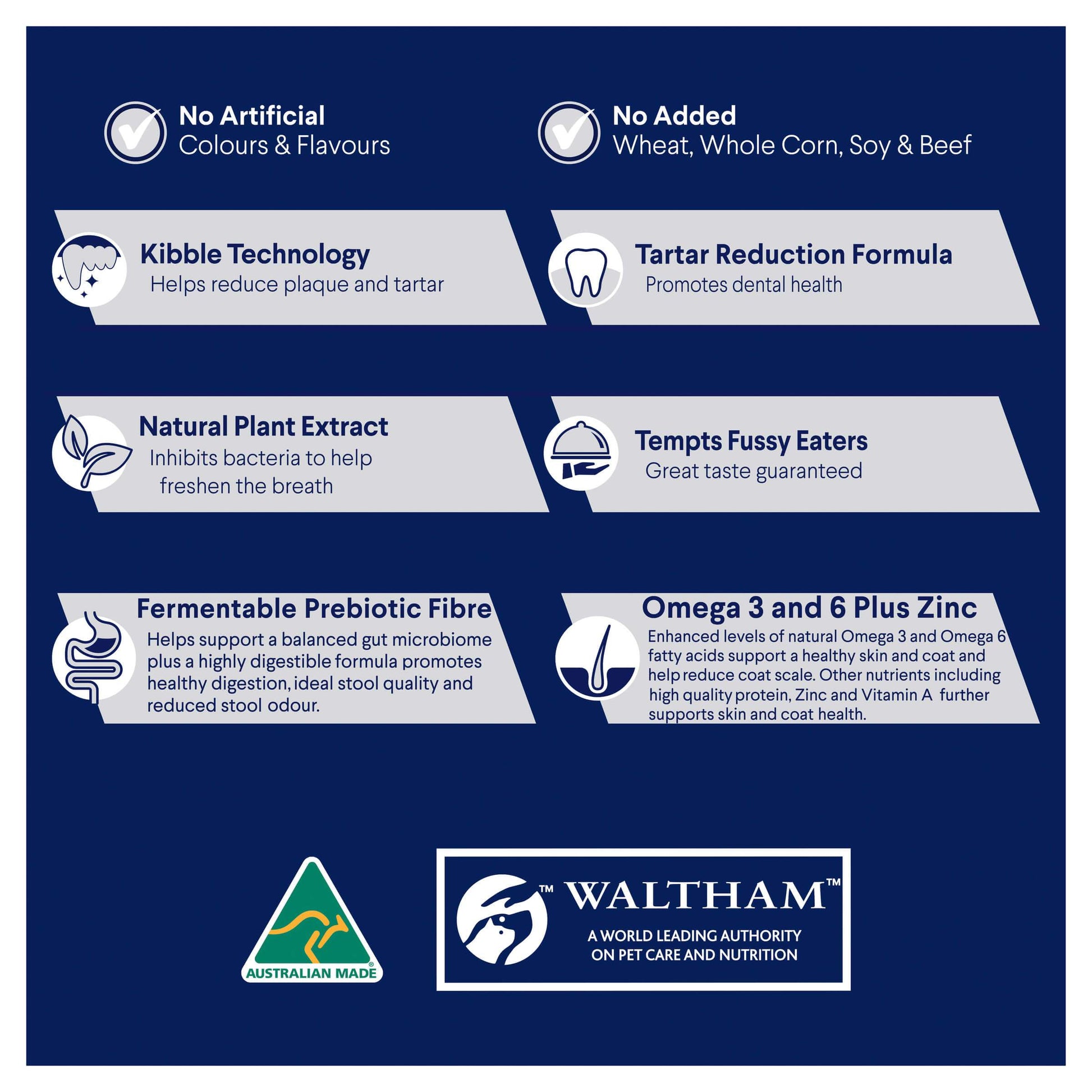 Worried about your furbaby's dental health? This dry dog food for dental care might help! It is made using select natural ingredients and promotes dental health. It features a larger kibble, which assists mechanical abrasion to minimise plaque and tartar production. It also helps to prevent plaque calcification as it contains sodium tripolyphosphate (STPP) that binds with salivary calcium.