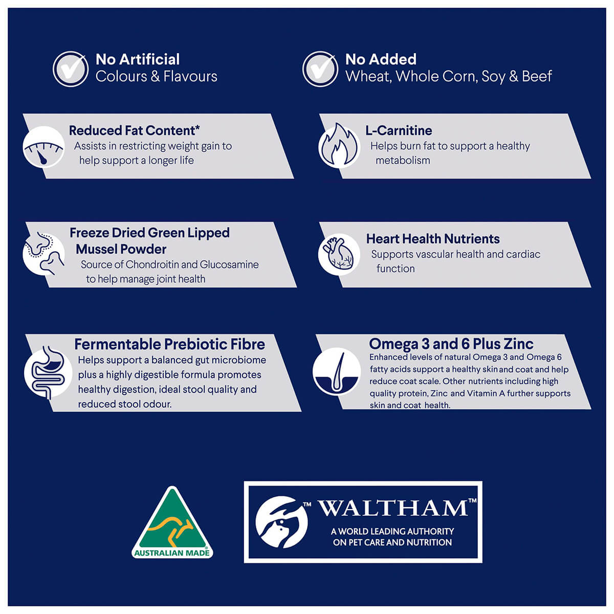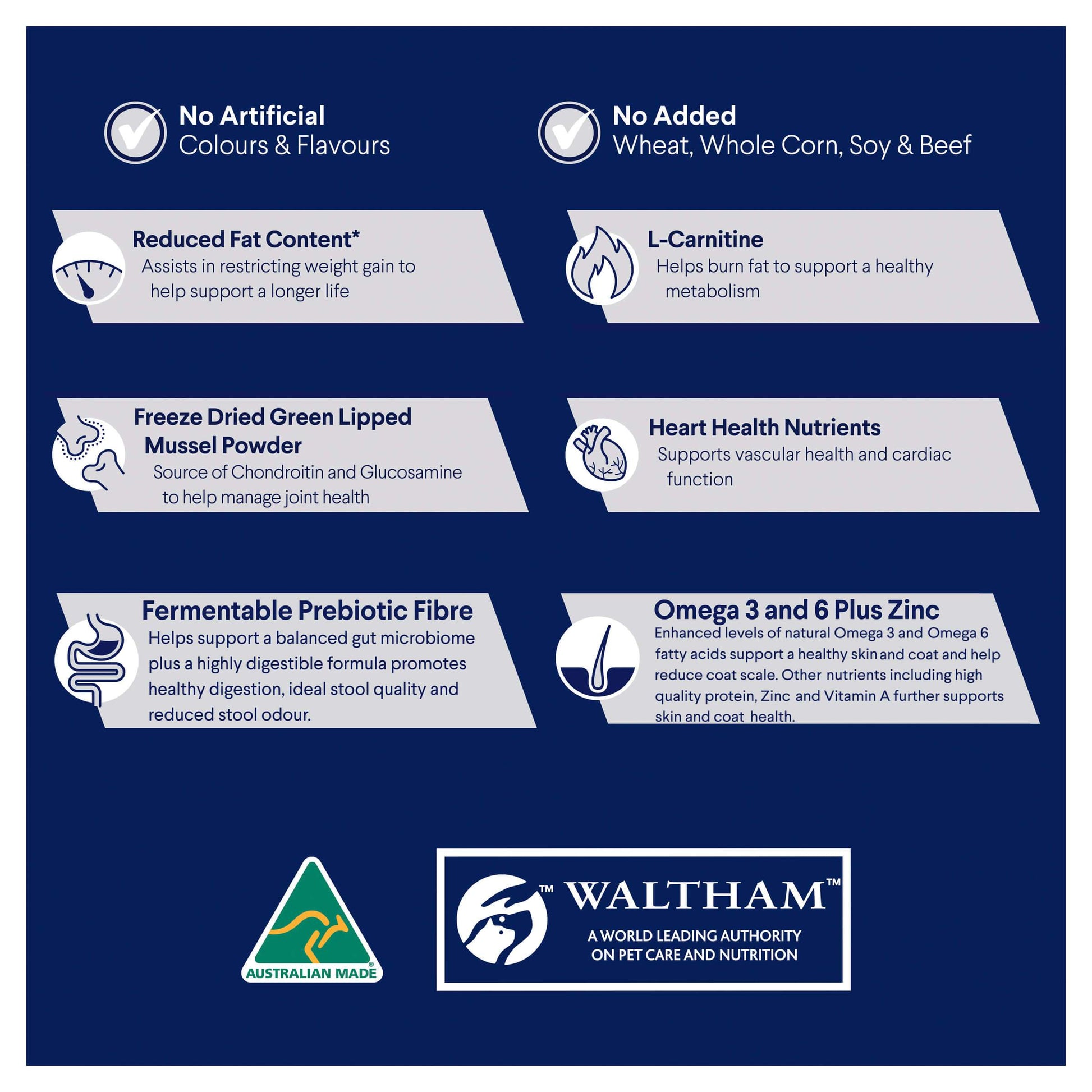 Often, we fall to the trap of guilt-tripping our pooches with treats and other food items whenever they flash their adorable puppy eyes on us. Although there is nothing wrong with spoiling your beloved fur baby, when not feeding in moderation, your doggy may be at risk of obesity. More so, if Fido isn’t active at play or exercise. Formulated with nutrients, vitamins and minerals for weight control of large or giant dog breeds, this is a perfect meal that your pooch will love.