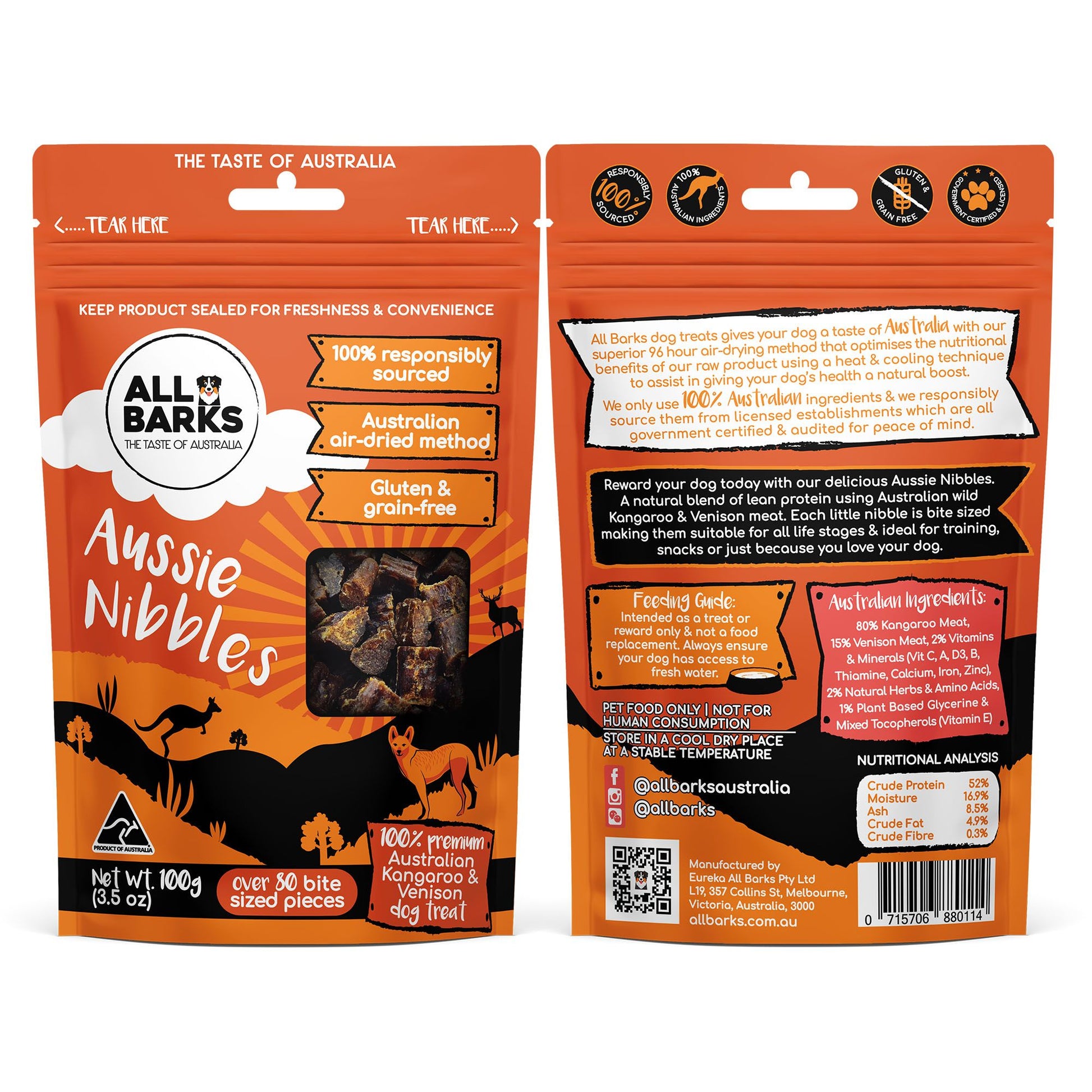 A natural blend of lean protein using Australian Wild Kangaroo & Venison meat. Each little nibble is bite sized making them suitable for all life stages and ideal for training, snacks or just because you love your dog. 80-100 pieces per bag.