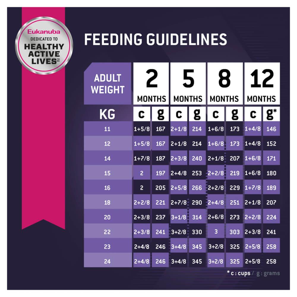 Puppies have their own nutritional requirements. They need balanced levels of protein, fat and carbohydrates for energy and growth. Eukanuba Puppy Growth provides a slightly reduced level of energy, compared with our Puppy Small Breed Formula, to match the requirements of a medium breed puppy. Great-tasting real chicken is the first ingredient, plus proteins, high-quality fats, excellent carbohydrates, and essential vitamins and minerals in the exact balance, ensures that a medium breed puppy will grow to his fullest potential.