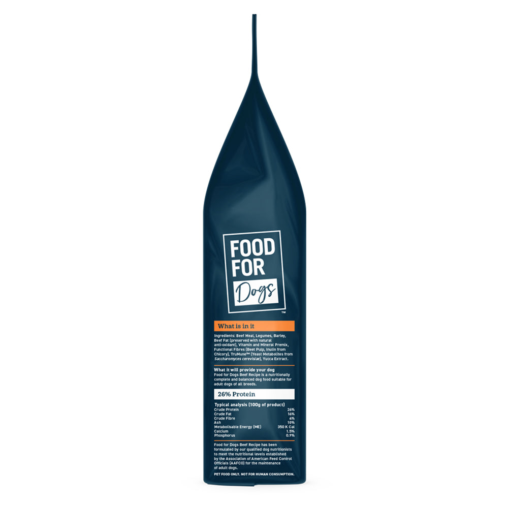 Food for Dogs is exactly what is should be - a complete, nutritious and tasty food that puts your dog's needs first. We do this by concentrating a small number of nutrient-dense ingredients, that have a proven role in dog health, into a quality kibble using the fewest steps needed.