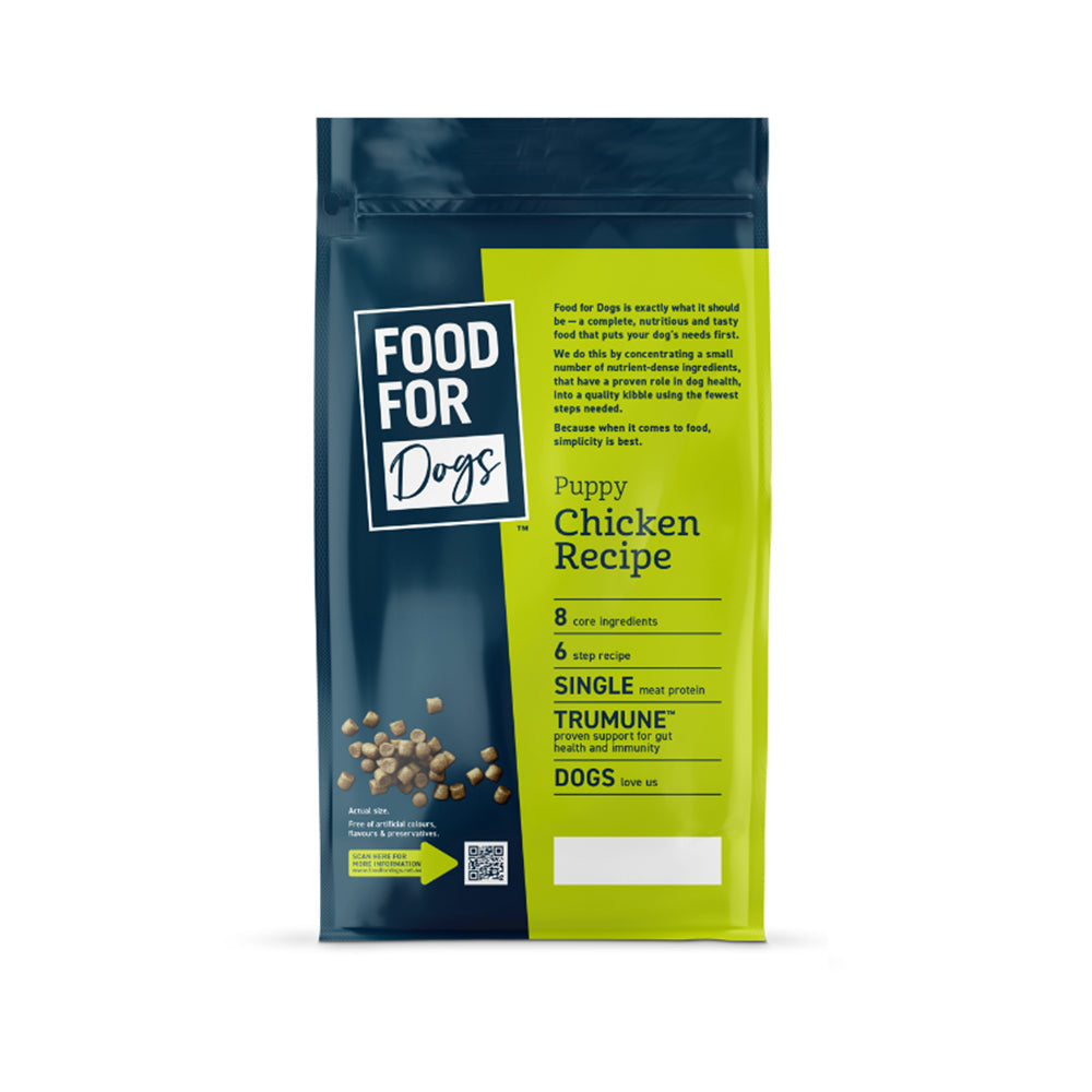 Food for Dogs is exactly what is should be - a complete, nutritious and tasty food that puts your dog's needs first. We do this by concentrating a small number of nutrient-dense ingredients, that have a proven role in dog health, into a quality kibble using the fewest steps needed.