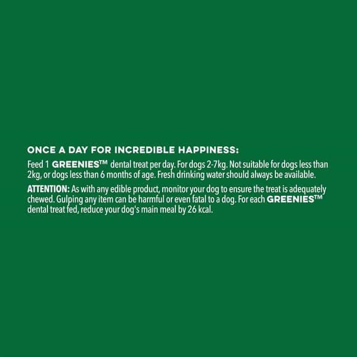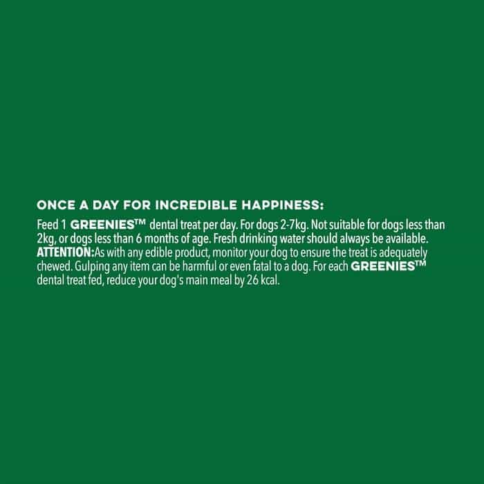 Greenies are a dental chew treat that aid in providing good oral health for your dog. Made from a selection of high quality proteins with a blend of essential vitamins and minerals to provide a complete oral care experience and a healthy treat. This 43 pack of teenie Greenies is recommended for extra small dogs.
