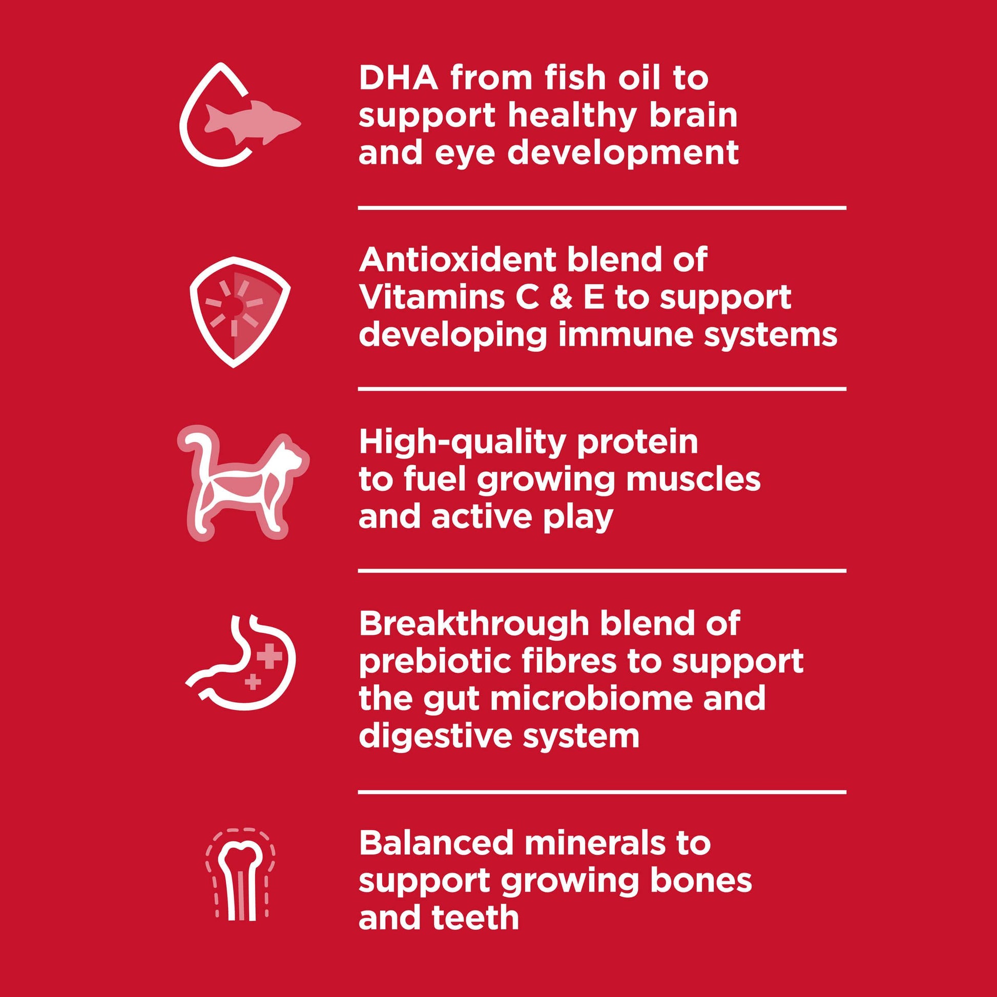 Hill's Science Diet Kitten Healthy Development is scientifically designed to provide precisely balanced nutrition to promote growth and development in young cats. Contains optimal levels of clinically proven antioxidants for a healthy immune system and is enriched with DHA from high quality fish oil for brain development. Made with high quality ingredients that provide a clinically proven essential blend of nutrients to give your kitten the best start in life.