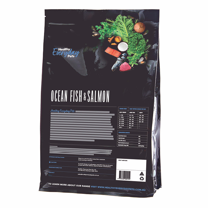 Healthy Everyday Pets Ocean Fish is an all-natural, Australian-made, grain and soy free food with natural nutrient-rich ingredients like kale, turmeric, green lipped mussels and a mixture of selected herbs. All fortified with Omega 3 fats from marine sources and a proprietary blend of organic minerals.