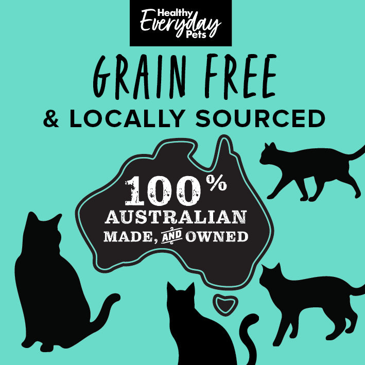 Healthy Everyday Pets Cat Seafood is an all-natural, Australian-made, grain and soy free food with natural nutrient-rich ingredients like kale, turmeric, green lipped mussels and a mixture of selected herbs. All fortified with Omega 3 fats from marine sources and a proprietary blend of organic minerals.