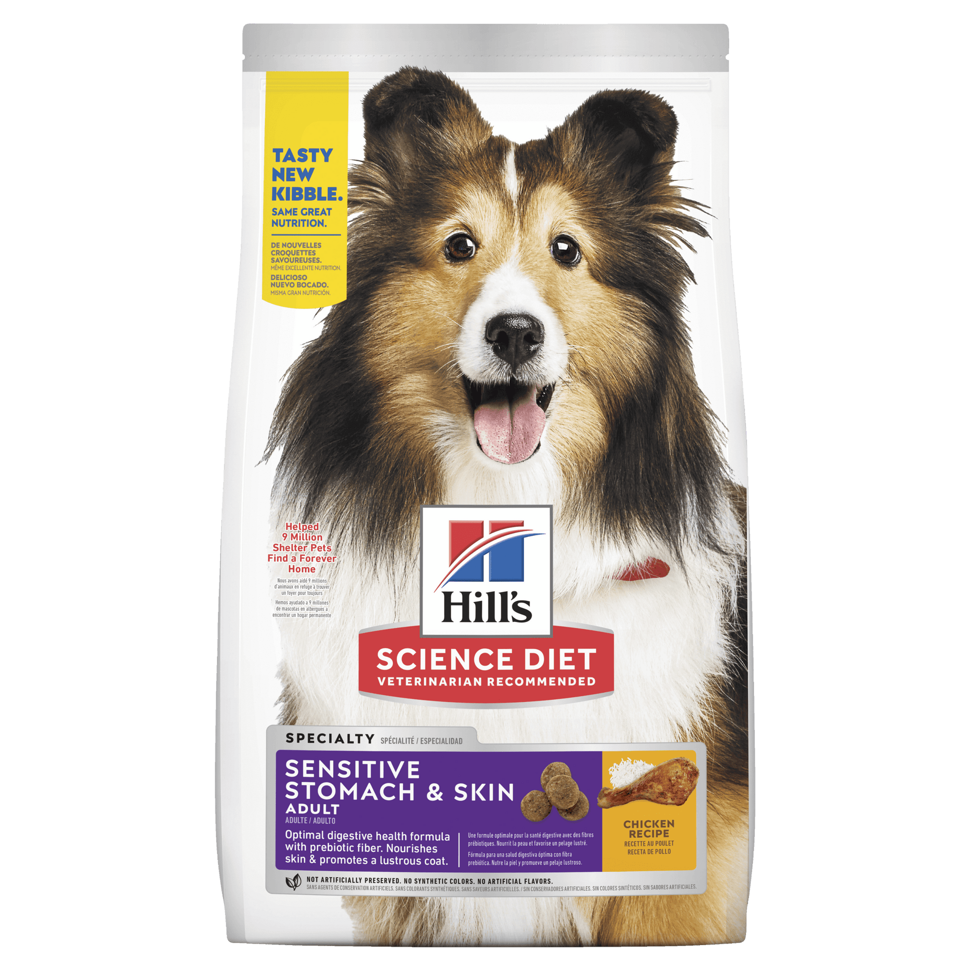 A dry food designed for dogs with sensitive stomach and skin, providing a balance of nutrition for sensitive digestive systems and to help improve skin and coat health.