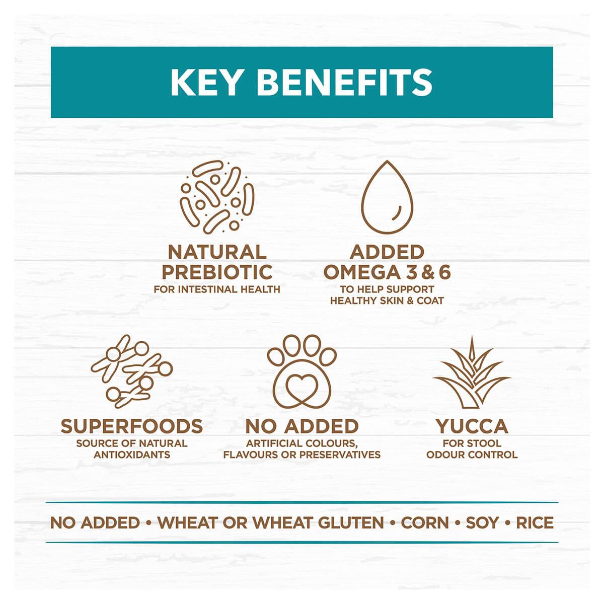 Using only the highest quality Australian-sourced ingredients, this high-protein and hypoallergenic grain free and chicken free dry food promotes healthy digestion and is packed full of wholesome ingredients including a high concentration of quality animal protein for lean muscle maintenance.
