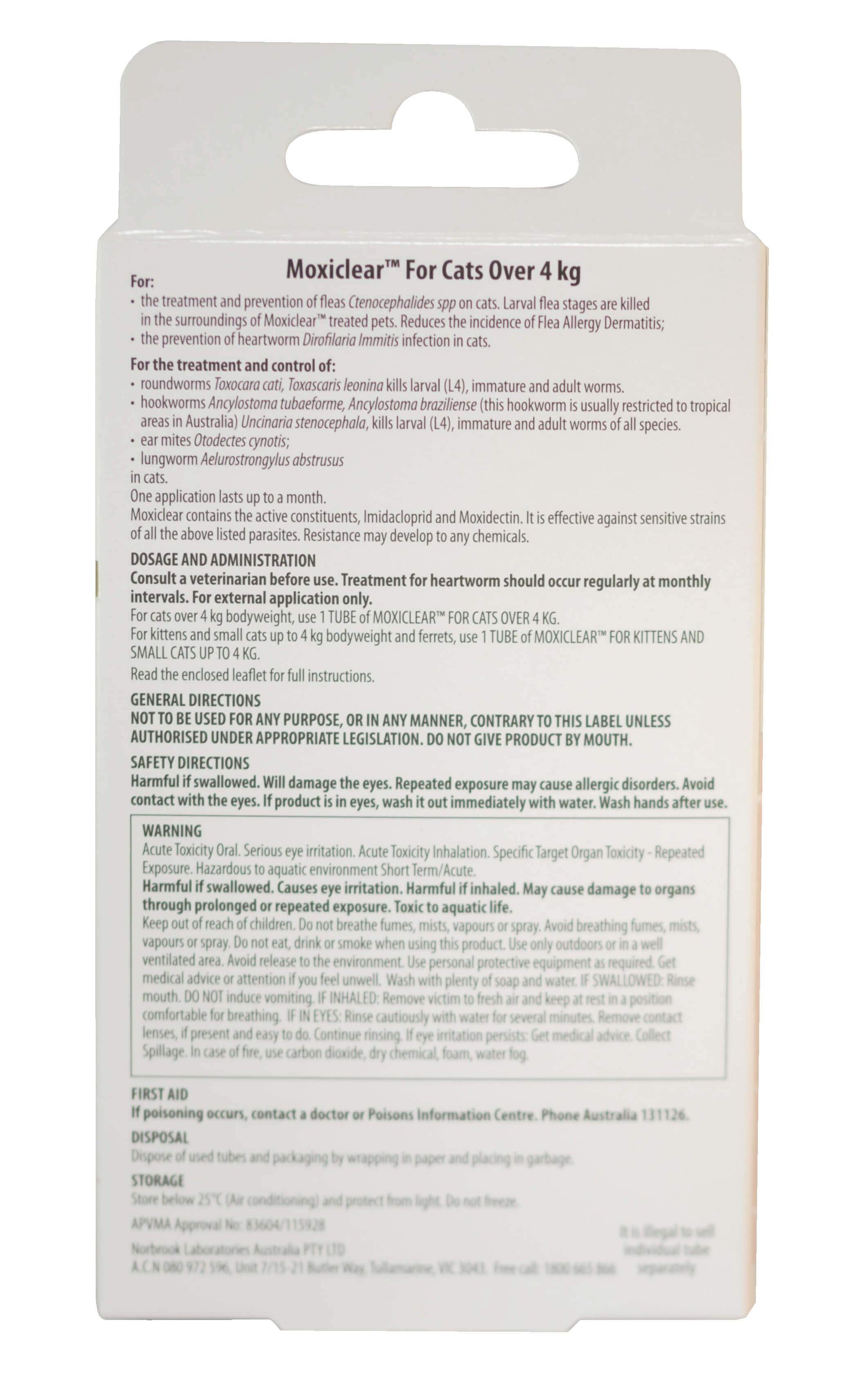 Conveniently and easily applied spot on treatment, Moxiclear provides treatment or prevention for Fleas, Heartworm, Roundworm, Hookworm, Lungworm & Earmites