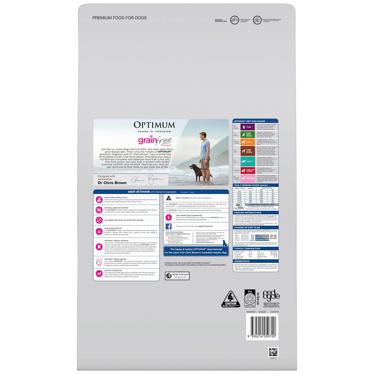 Optimum Adult Grain-free Chicken and Vegetables Dry Food is a balanced, and nutritionally complete dry food diet for adult dogs. Formulated with a grain-free formula, this diet is also enriched with beet pulp to provide a natural source of fibre. This helps to control intestinal transit and maximise nutrient absorption which results in smaller, firmer stools.