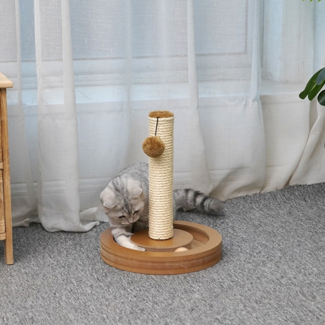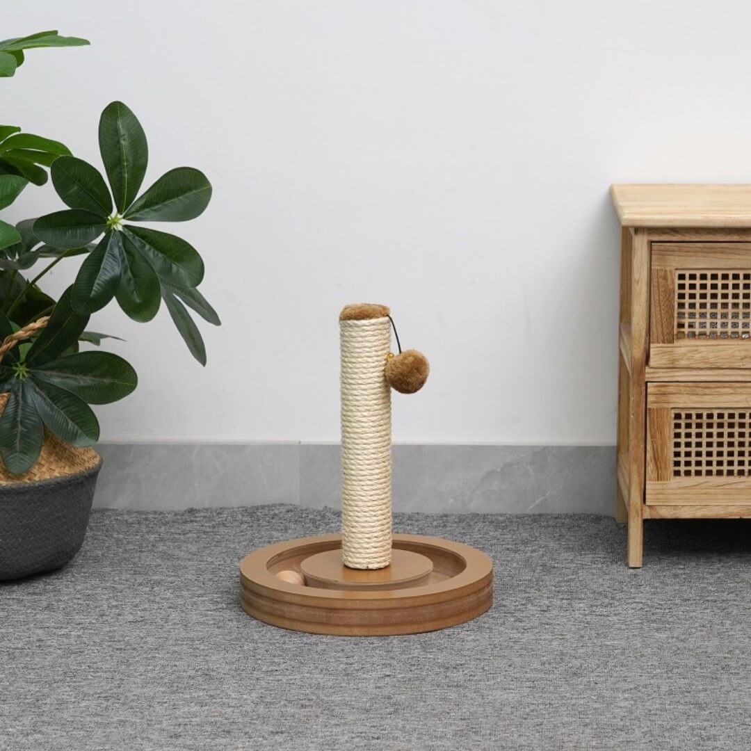 The PetPals Small Sisal Cat Scratcher with Feather Teaser and Racing Ball is the perfect scratching toy for small cats and kittens. Its unique and modern design features a sisal rope scratching post finished with a feather teaser and a racing ball in the base. The neutral colours will ensure your scratcher will blend in with your home decour. It's the perfect alternative to the couch or carpet for your cat to scratch! Dimensions: 300L x 300W x 350H mm