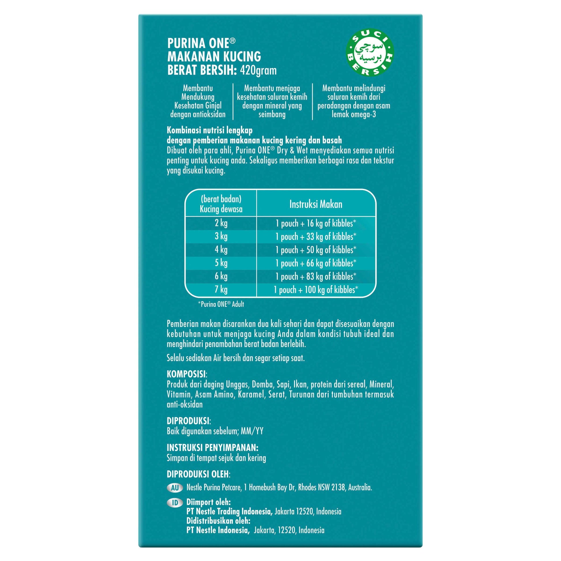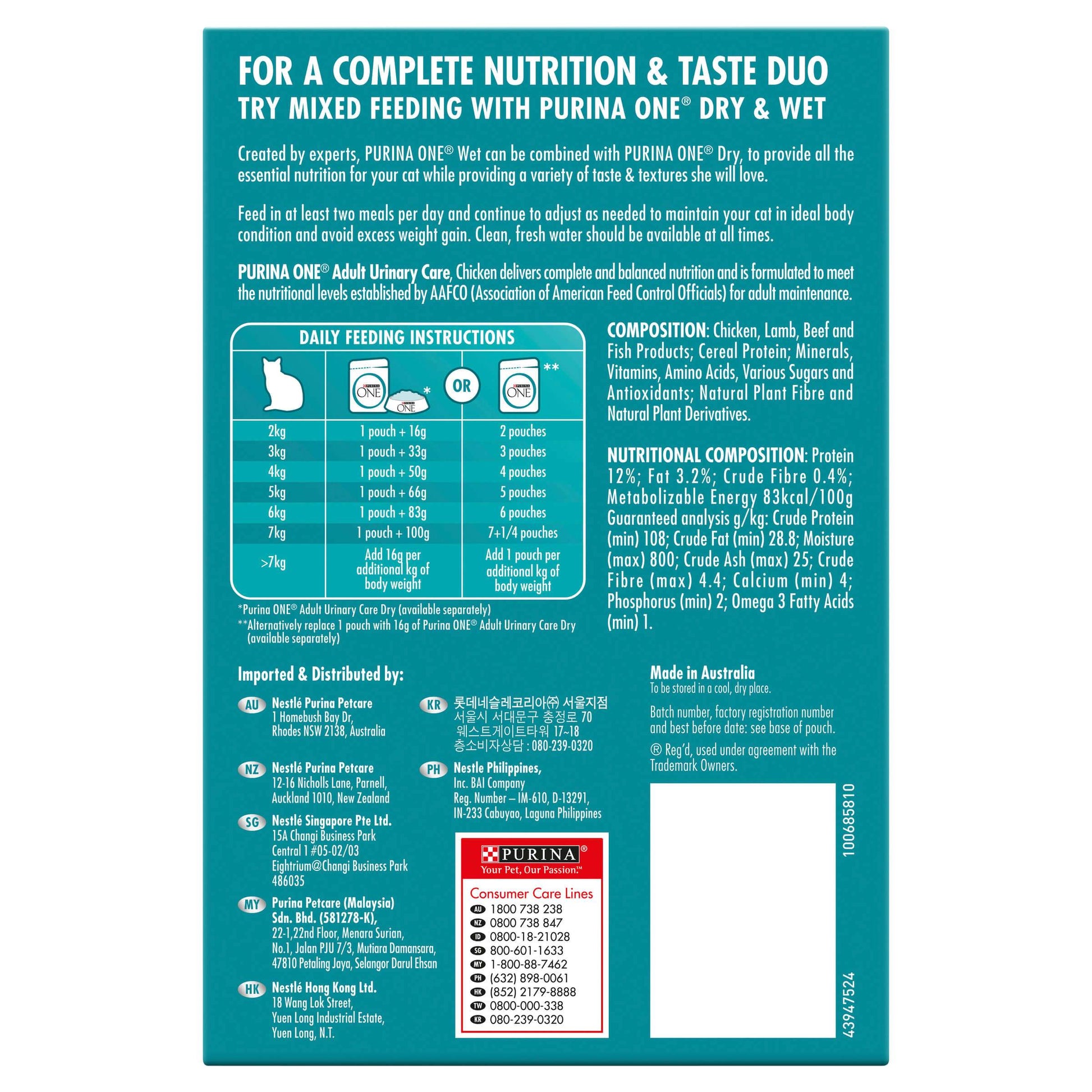 PURINA ONE for ADULT 1+ years Urinary Care Chicken with succulent chicken in gravy helps support kidney health, maintain urinary tract health and protect urinary tract from inflammation
