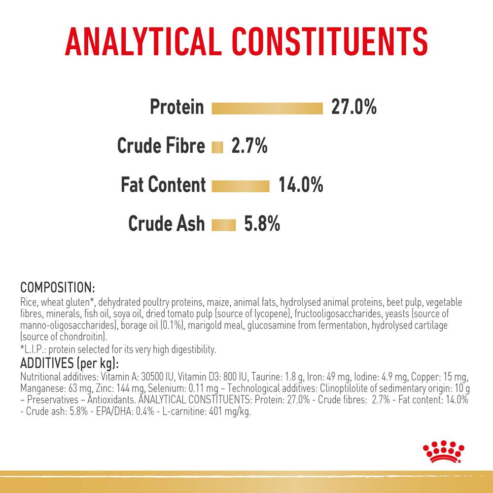 The diet contains a rich source of omega 6 fatty acids from borage oil, and contains specific vitamins and amino acids important for skin and coat health and that help to intensify coat colours
