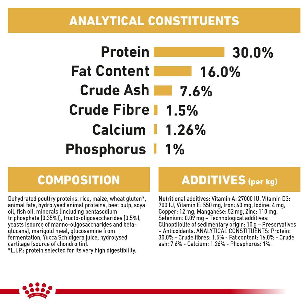 DACHSHUND JUNIOR contributes to supporting the Dachshund puppy's bones and joints thanks to adapted calcium and phosphorus content. This exclusive formula also helps maintain ideal weight.