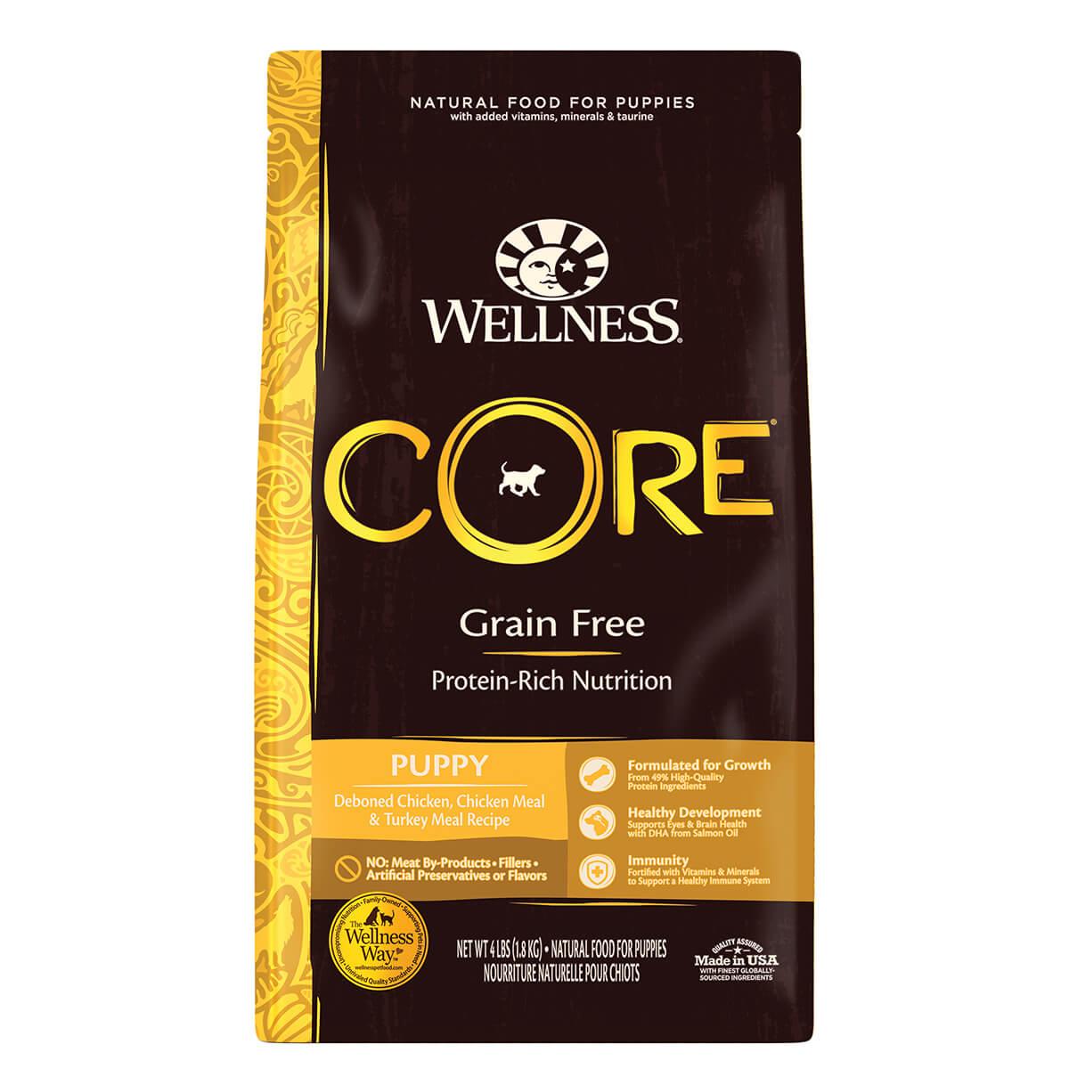 CORE Puppy food has optimal calories and Docosahexaenoic Acid (DHA) puppies need for healthy brain, bone, and muscle development. CORE recipes are crafted based on the nutritional philosophy that dogs, based on their primal ancestry, thrive on a natural diet mainly comprised of meat. Our Grain-Free, Protein-Rich puppy food is packed with premium protein along with nutrient-rich superfoods and nutritional supplements to ensure your puppy has everything they need to thrive from the CORE.
