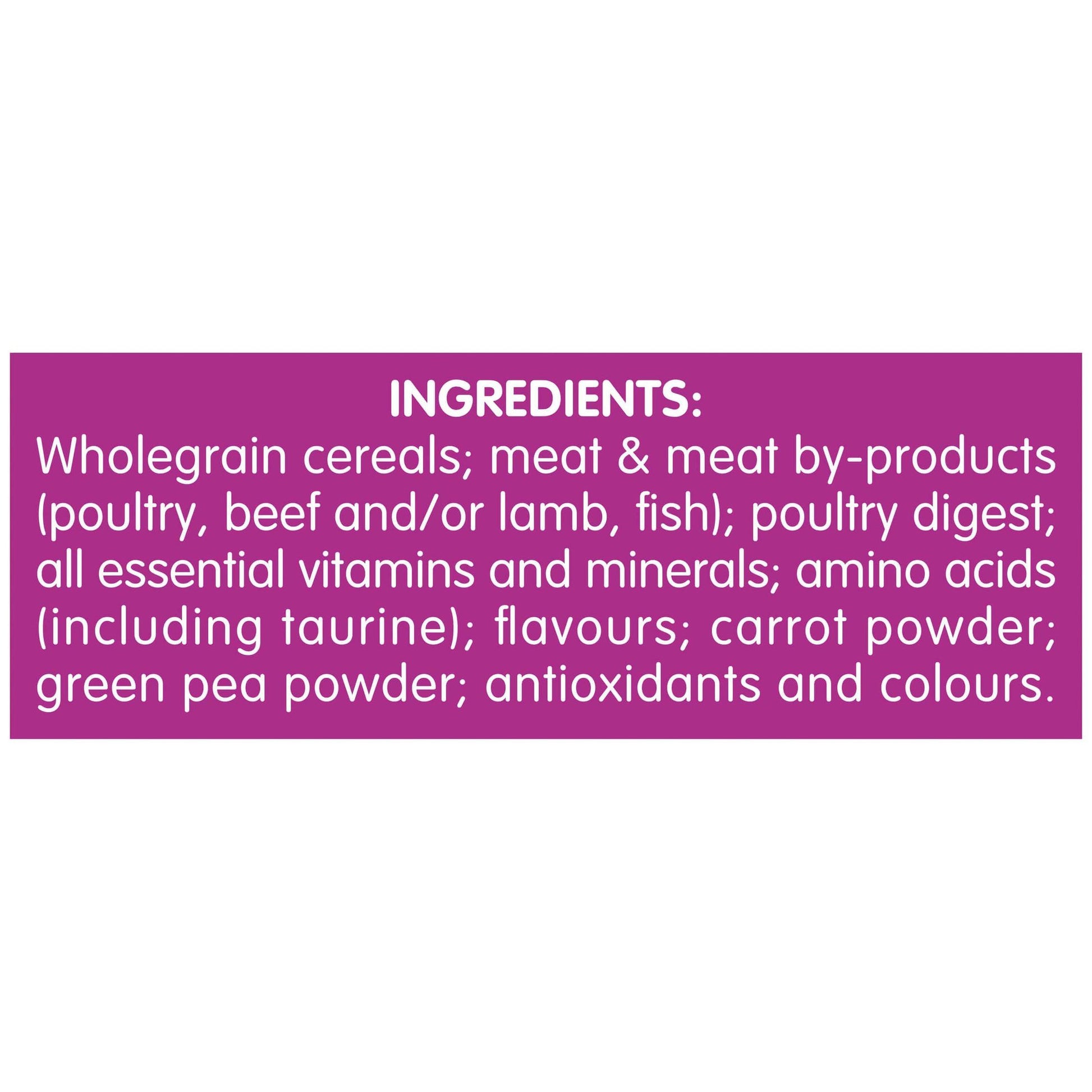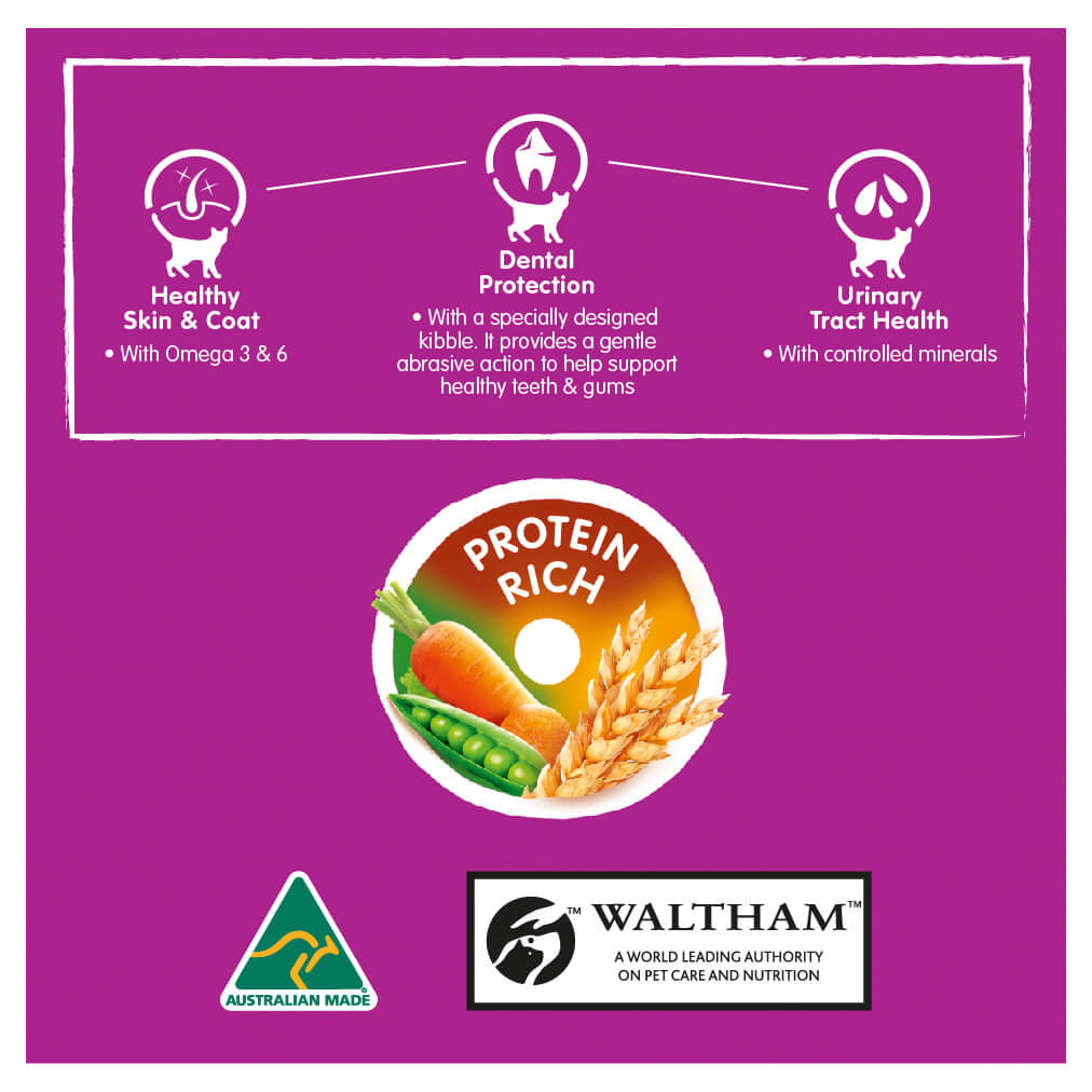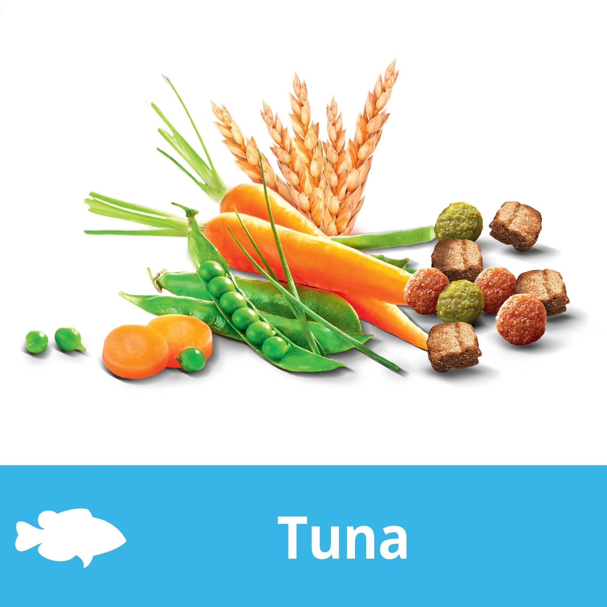 Whiskas make delicious, 100% complete and balanced recipes for cats at all stages of life. This complete and balanced dry food contains all the protein, vitamins, minerals and energy that your adult cat needs. With delicious crunchy tuna flavoured biscuits, this formula also includes specially designed Dental Protection Plus pieces that act to scrub teeth clean with every chew to help reduce plaque and tartar buildup.