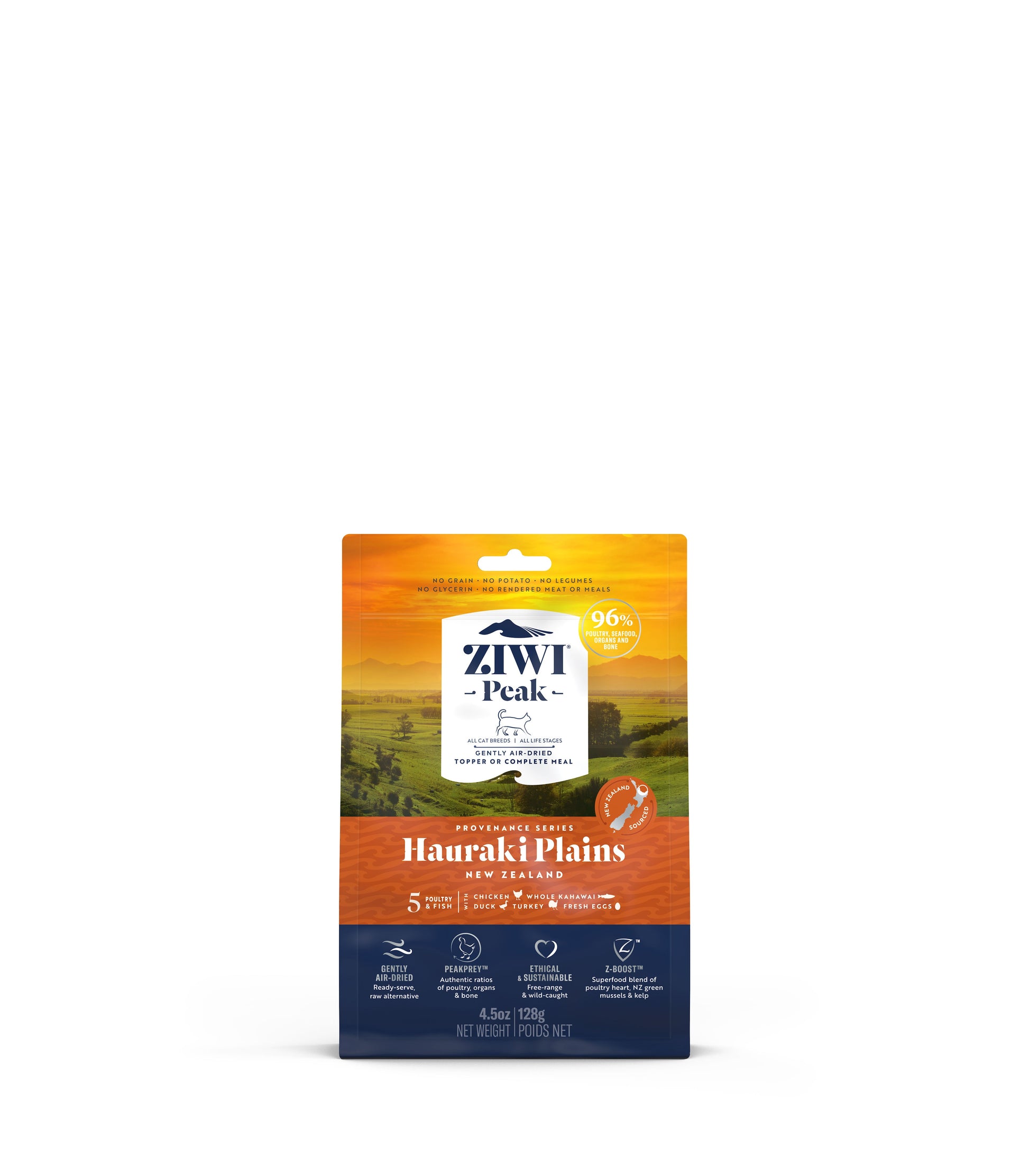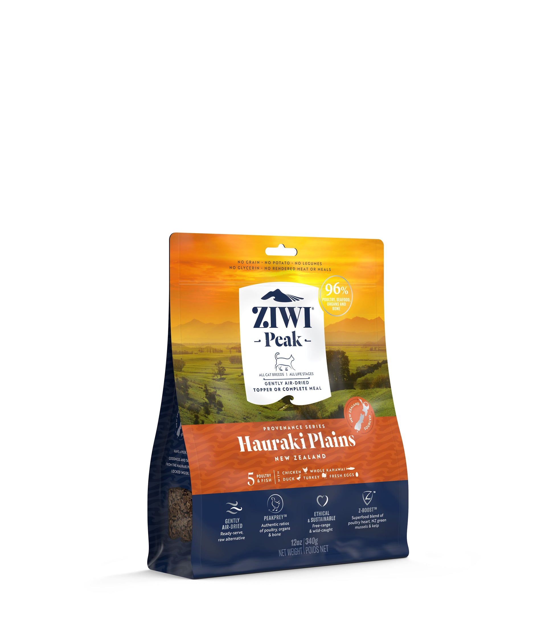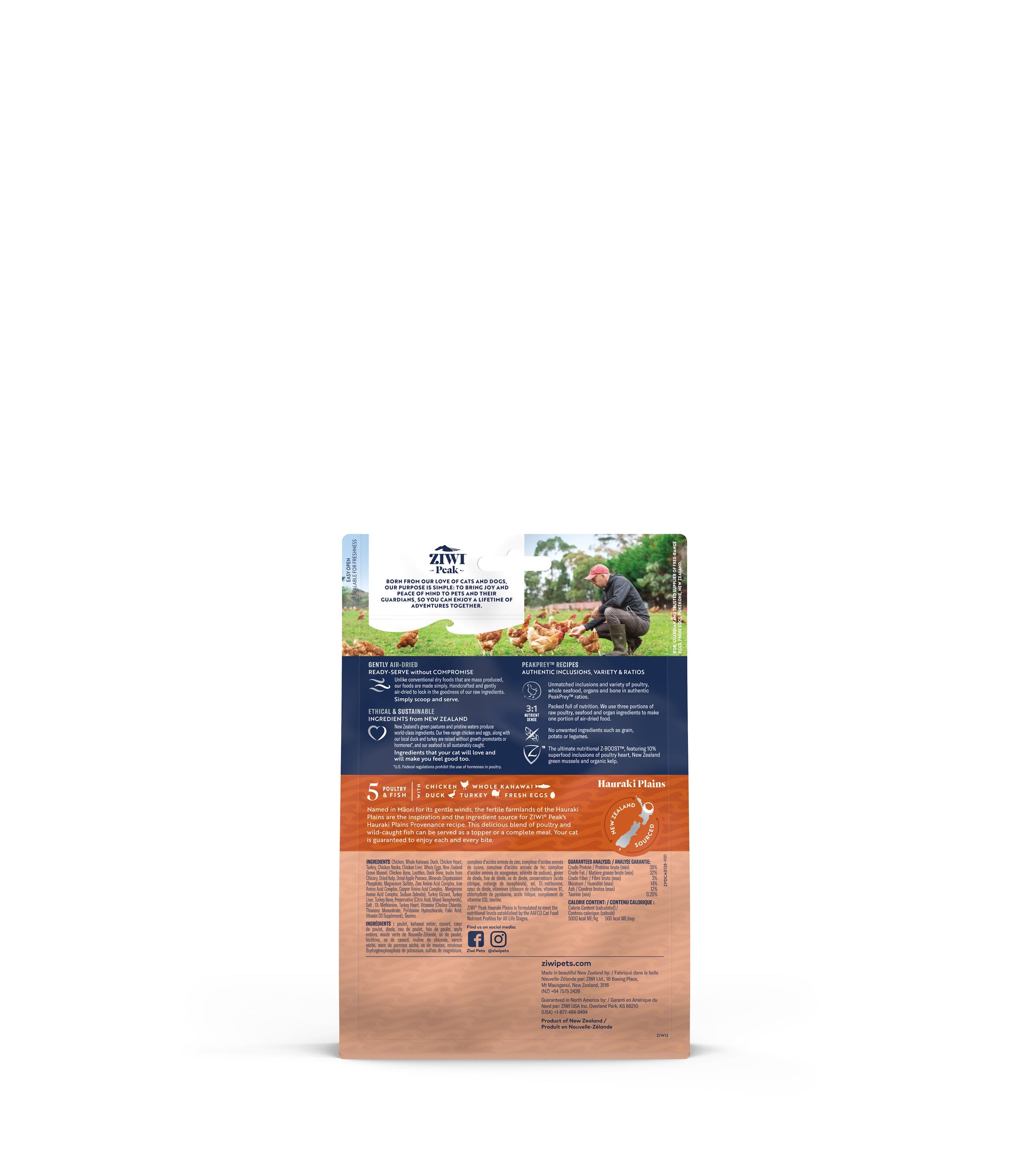 Provenance Series Hauraki Plains Air-dried recipe for Cats Named in Maori for its gentle winds, the fertile farmlands of the Hauraki Plains are the inspiration and the ingredient source for ZIWI Peak's Hauraki Plains Provenance recipe.New Zealands green pastures and pristine waters produce world class ingredients. This recipe includes unmatched inclusions and a variety of free-range poultry and wild-caught fish all in authentic PeakPrey(TM) ratios.We combine the best of raw and fresh diets with the safe convenience of dry foods. Served as a topper or a complete meal cats will be sure to love and pet parents will feel good about feeding too.